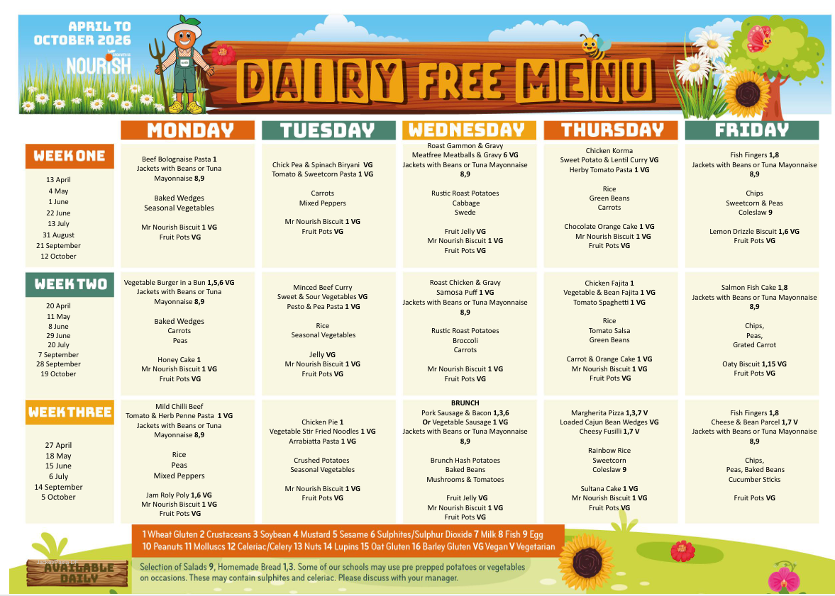 Dairy Free Menu